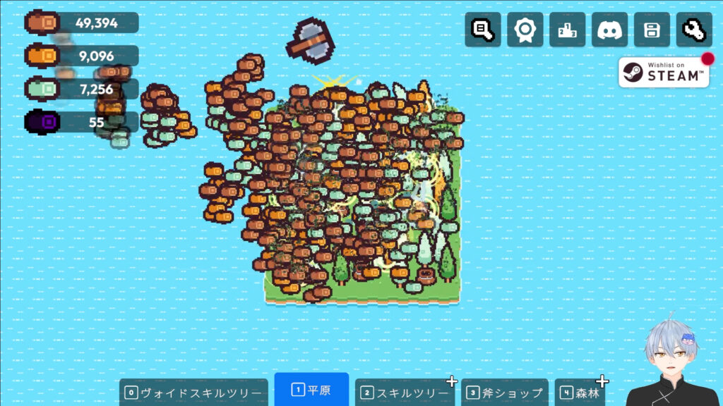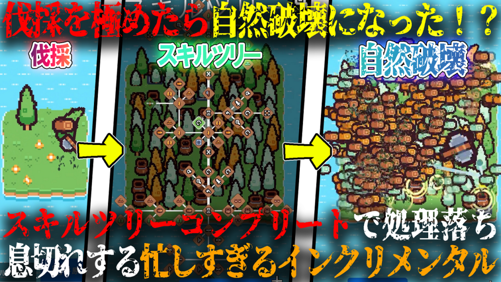 スキルツリーを取りまくることで伐採から環境破壊レベルまで成長させるのが楽しいゲームだ。