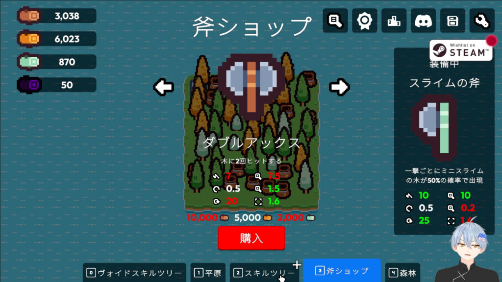 斧ショップもスキルツリーで解放される。